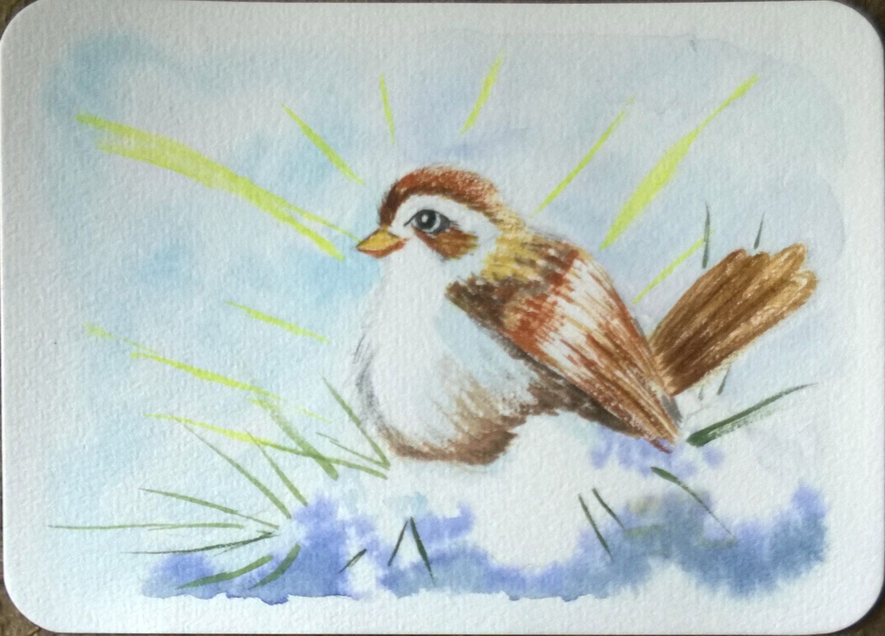Февральский воробышек Автор: Наталья Болдырева Открытка по уроку животные, зима, иллюстрация, птица, птицы, снег, акварель, воробей 515 Пожаловаться
