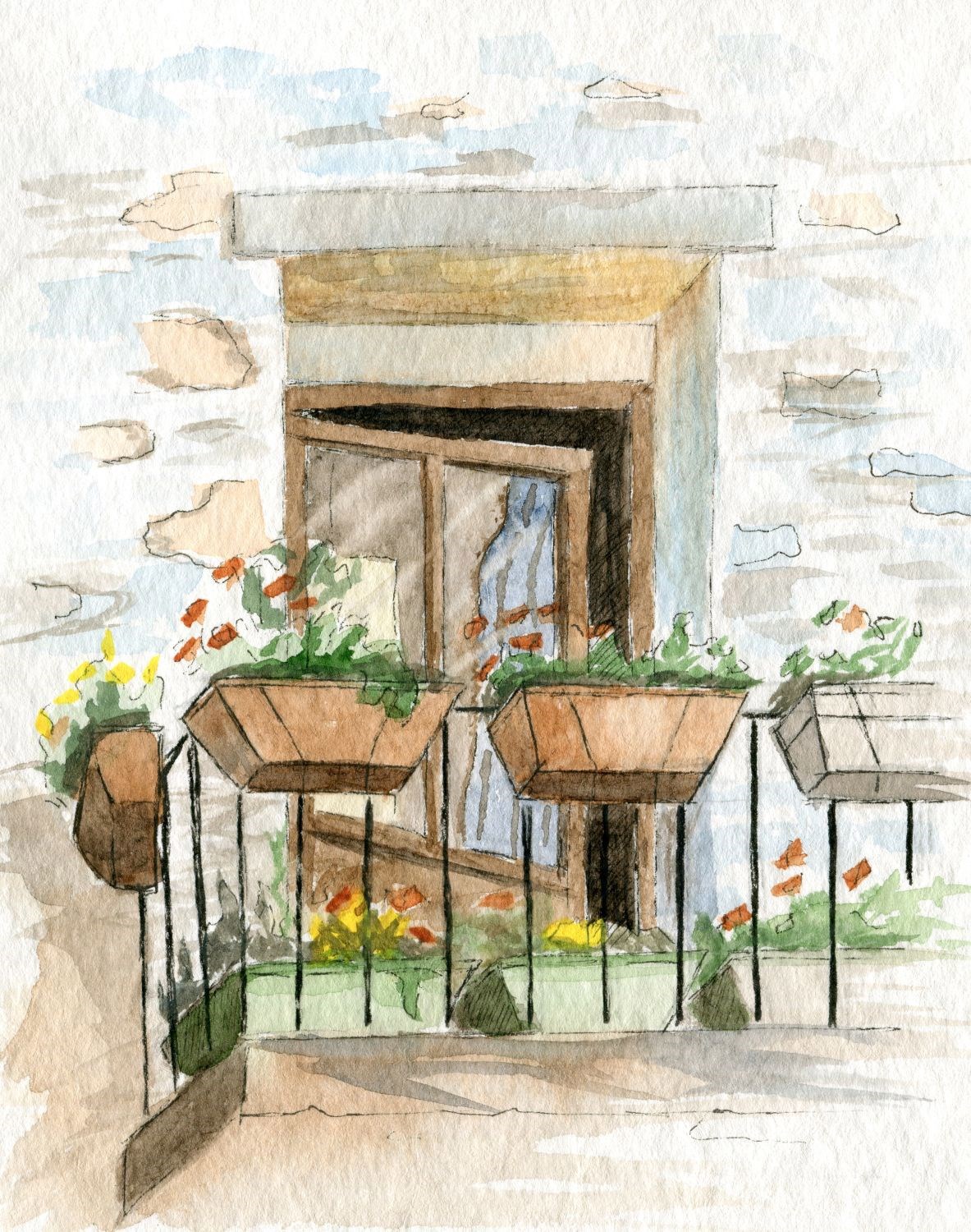 На балконе Автор: Наталья Болдырева Акварель по уроку иллюстрация, пейзаж, акварель, городской пейзаж 451 Пожаловаться