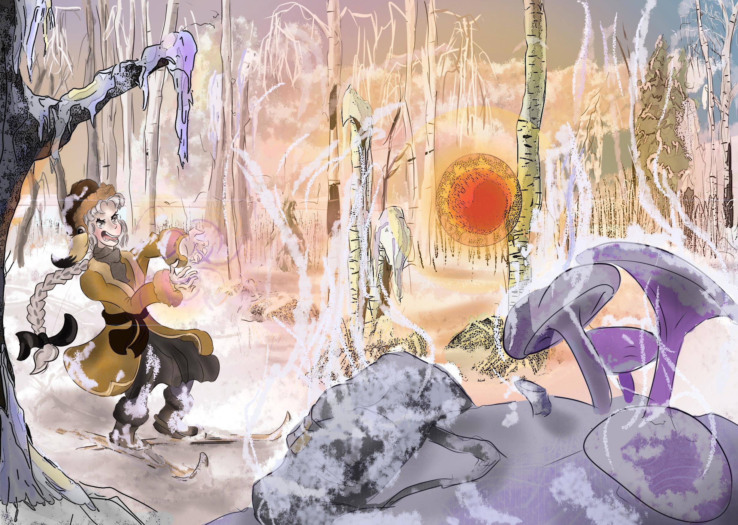 Ну а коль уж кому и правда понравилась эта илюстрация и хочется узнать, "а к чему все это?" чего это девченке захотелось покидать огненные шары по грибам - добро пожаловать на страници "Юных лет заклинательницы духов Кетрин Ренс"