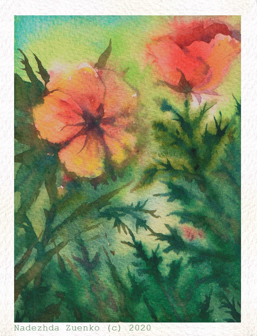 Упражнялась на хлопковой бумаге. Хотела повторить работу за creationsceecee с ютуба. Цветочки этакие миленькие, с акварельными потёками, и всё такое золотистое, славное.