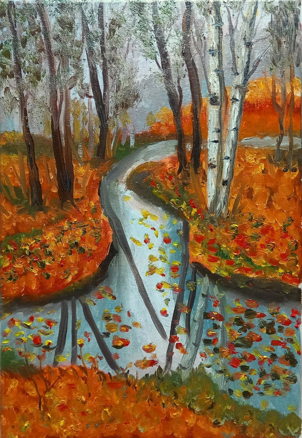 Картинка на холсте с подрамником, маслом. 20х30. Проводила мастер-класс для взрослой ученицы. Мой вариант.