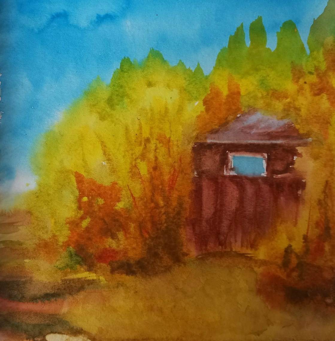 Жёлтенькая осень Автор: Ольга Левонович Контрасты основных цветов. Жёлтый и синий. Акварель, 20х20, с фоточки моей. иллюстрация, акварель 103 Пожаловаться