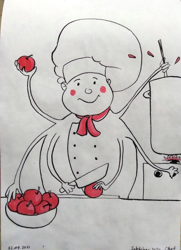 Инктобер 2020. 22 Шеф-повар Автор: Зоряна Заряница инктобер, инктобер2020, рисунок, графика 66 Пожаловаться