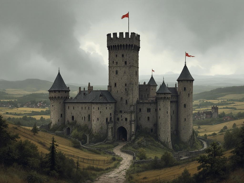 Горе, постигшее замок де Моноте, было безмерным. Молодой барон Корнейль, потеряв горячо любимую юную жену Альбофледу, впал в черную меланхолию. Ребенка, названного Жилем в честь умершего деда, старого барона, он едва замечал, видя в нём не столько сына-наследника, сколько виновника своей потери. Младенца отдали на попечение кормилицы и маленькой свиты, состоящей из служанки и оруженосца, поместив, по традиции, в южном крыле донжона, где когда-то вырос и сам молодой барон. Впрочем, сейчас он стал просто барон, а "молодым бароном" стал его младенец сын.