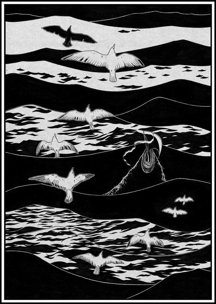 В океане Автор: Михаил Мирн Иллюстрация для восьмой главы "Белой книги" графика, иллюстрация, рисунок, творчество, чернобелое 16 Пожаловаться