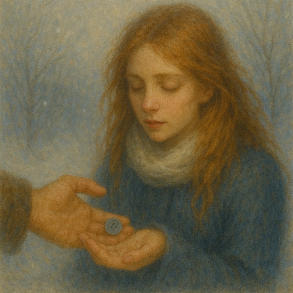 Я взяла. И поняла: это она. Последняя. Та, что застёгивает зиму на сердце. И ещё больше: что он сам - и есть эта пуговица. Та самая, которой не хватало, чтобы застегнуть мою зиму и мою душу. Чтобы всё не расползалось по швам.
