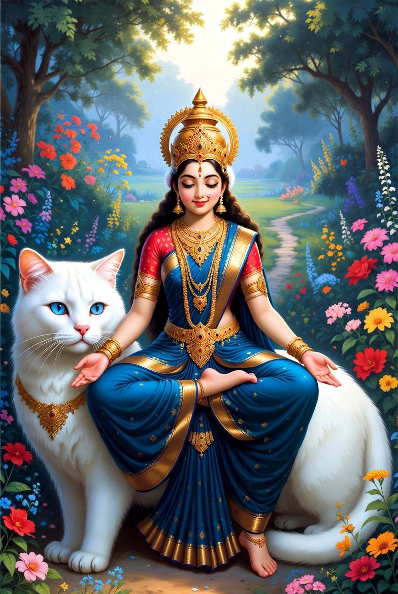 Шаштхи и ее вахана Автор: Анна Миолай Пока писала повесть про кошек и индуистскую богиню Шаштхи, сделала много картинок. Опубликую некоторые из них. иллюстрация, кошка, нейросеть, шаштхи 11 Пожаловаться