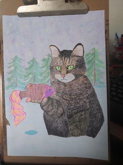 Исполнения желаний Автор: Светлана Кузнецова В рамках нагнетания предновогоднего настроения.Сканер крадет желтый. Через фотоаппарат красочнее: котики, рыба, скоро новый год, традишка, авторский арт 75 Пожаловаться