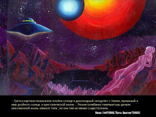 Как одна из Пяти «ненаписанных» картин по мотивам рассказа Ив. Ан. Ефремова "Пять картин" ( 1965 г.), работа апеллирует к: