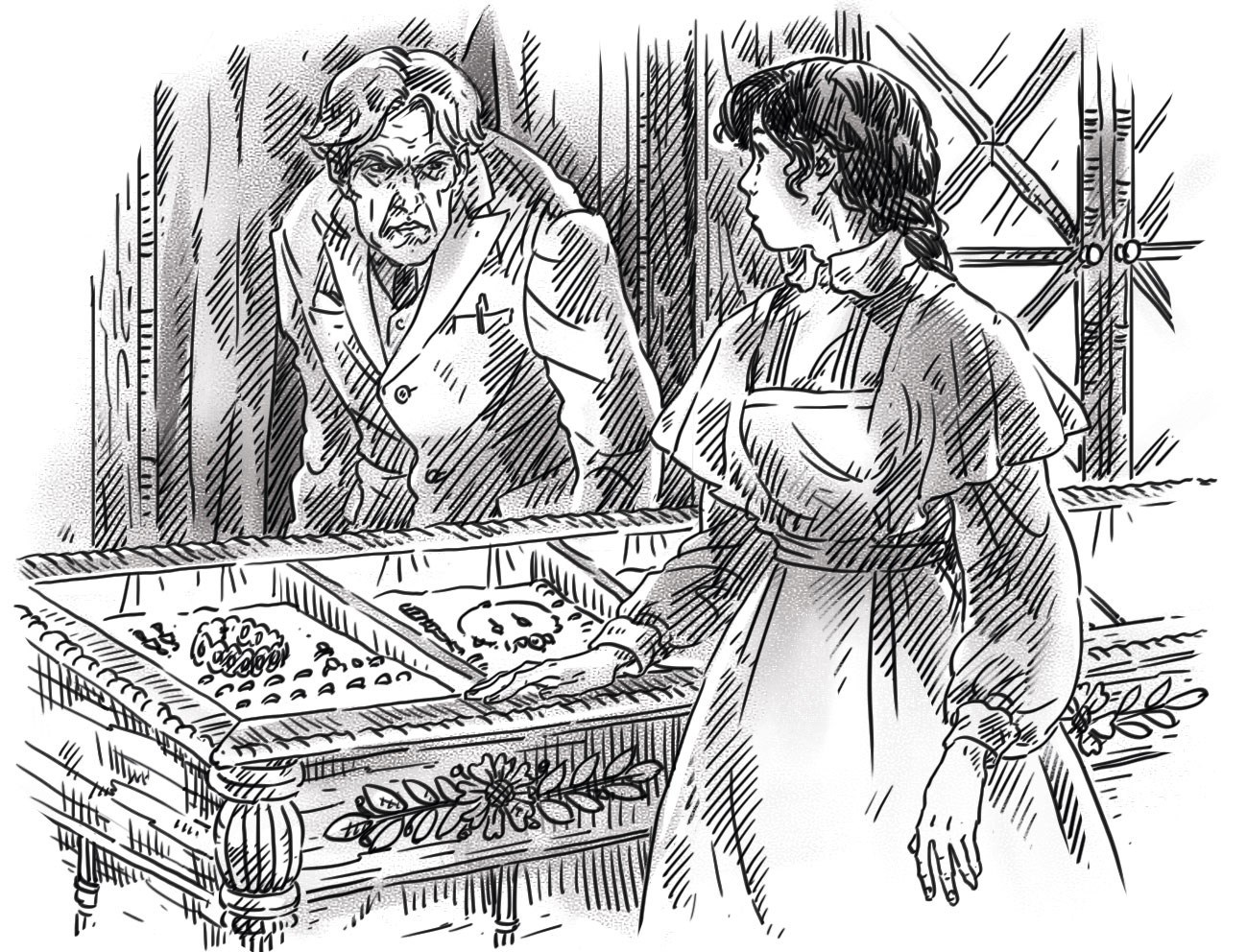 Но ювелир, кажется, гостье не рад.