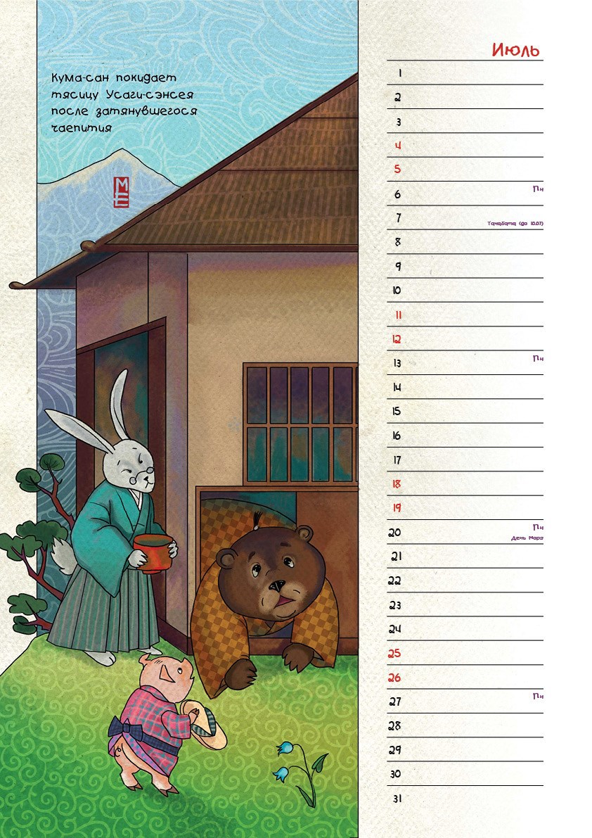 Кума-сан покидает чайный дом Усаги-сэнсея Автор: Мария Емельянова Подробнее обо всем календаре в этом посте сказки в кимоно 22 Пожаловаться