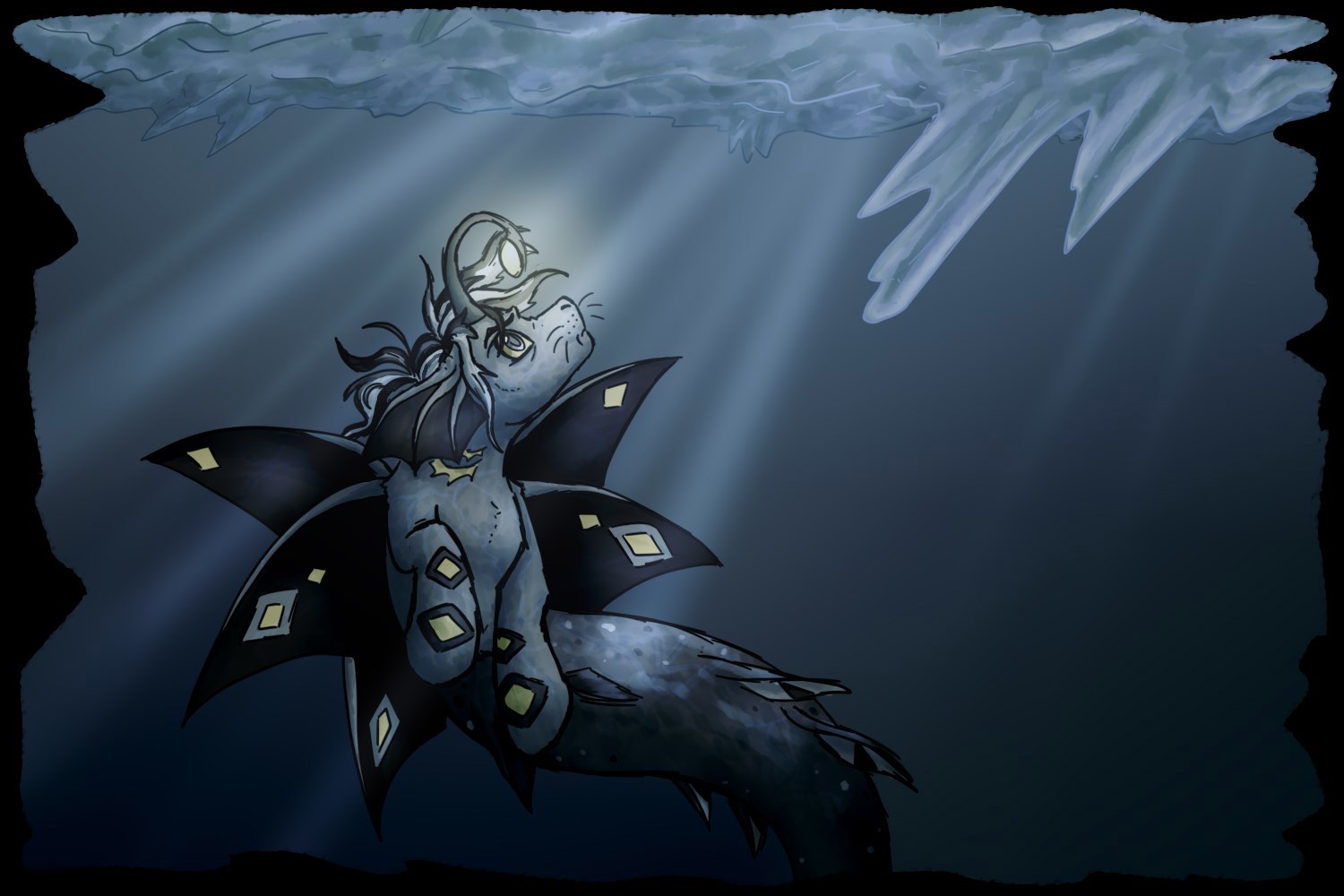 Король в лучах света Автор: Клапка Сова Иллюстрация к четырнадцатой главе "Под тощей льда" фика Снежное Зерно (https://author.today/work/486054). другой мир, иллюстрация, мои персонажи, персонажи, русалка, арт, фэнтези, магия 11 Пожаловаться