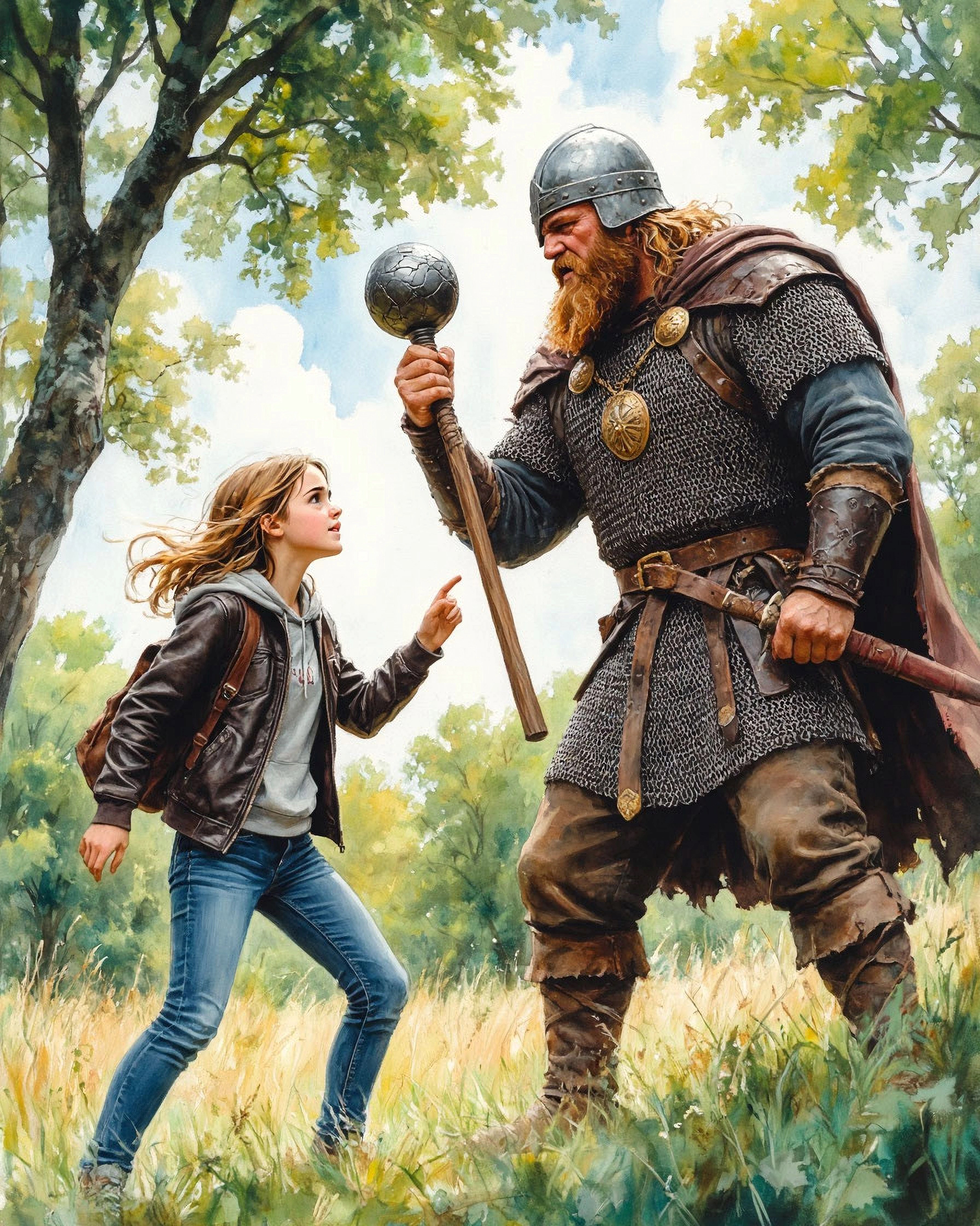 Одно неловкое движение руки и хроноворот совершил парочку, десятков ,лишних оборотов. Теперь это не её время , похоже не Хог, и даже не Остров. Может вообще другая реальность . Вот и здоровенных габаритов сэр рыцарь , в кольчуге при шлеме и палице , как бы намекает на это . Обливиэйт и отвод глаз не подействовали , а левитация огромного валуна,завершилась добродушной усмешкой бородатого качка и выдраным с корнем дубком ,в обхват рук самой Гермионы. В итоге общение налаживали жестами, кривой латынью и не менее кривыми фразами из самоучителя русского языка, для туристов. В кои-то веки пригодились обширные знания , не из школьного курса. . *** Сэр Илья пообещал познакомить юную ведунью с местными коллегами: Бабой Ягой, Кащщеем Бессмертным, может и Кот-учёный, что присоветует.