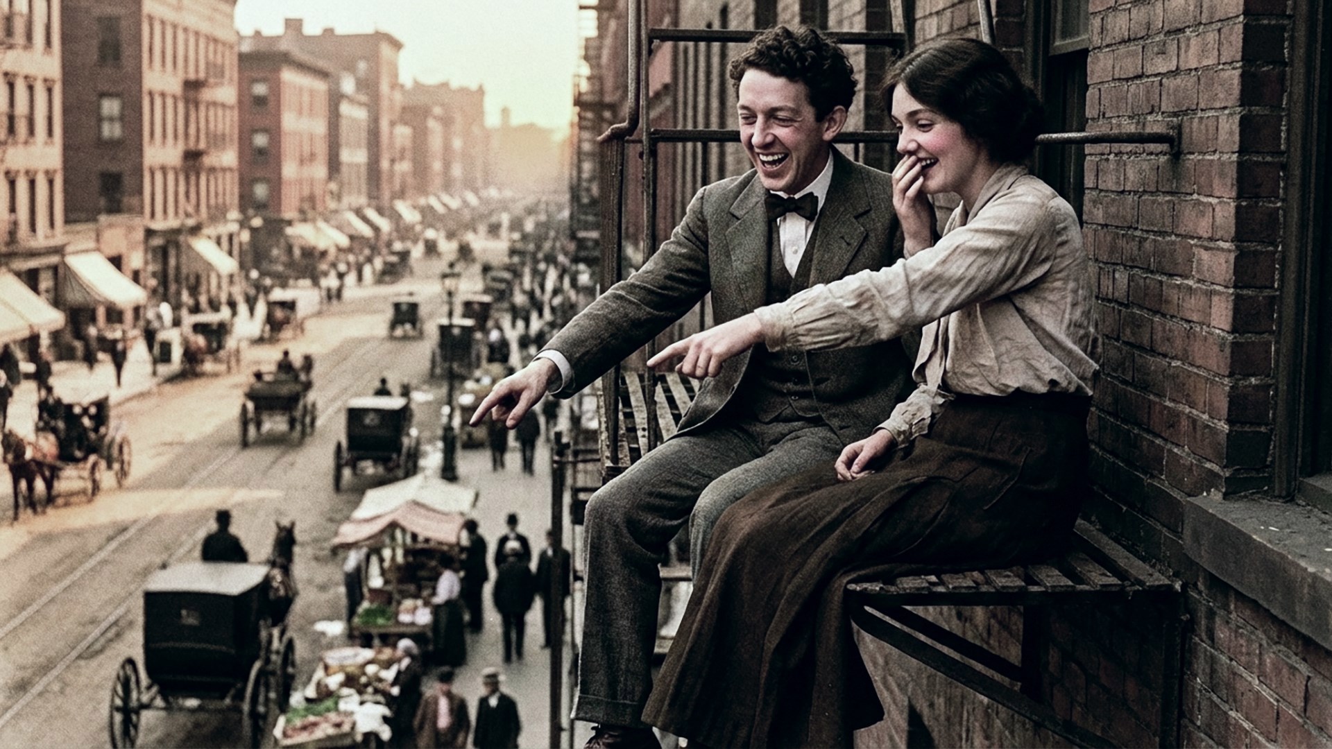Иллюстрация получилась многосложная. Сначала я "придумал" образы в карандашном скетче. Потом сделал из них фотографии в стиле тех времен. Дальше - сгенерировал сценки в виде статических кадров. И, напоследок, анимировал и сшил в маленький клип. Клип озвучен Суно по моим же словам. А представленная иллюстрация - затравка для анимирования предпоследней сцены клипа.