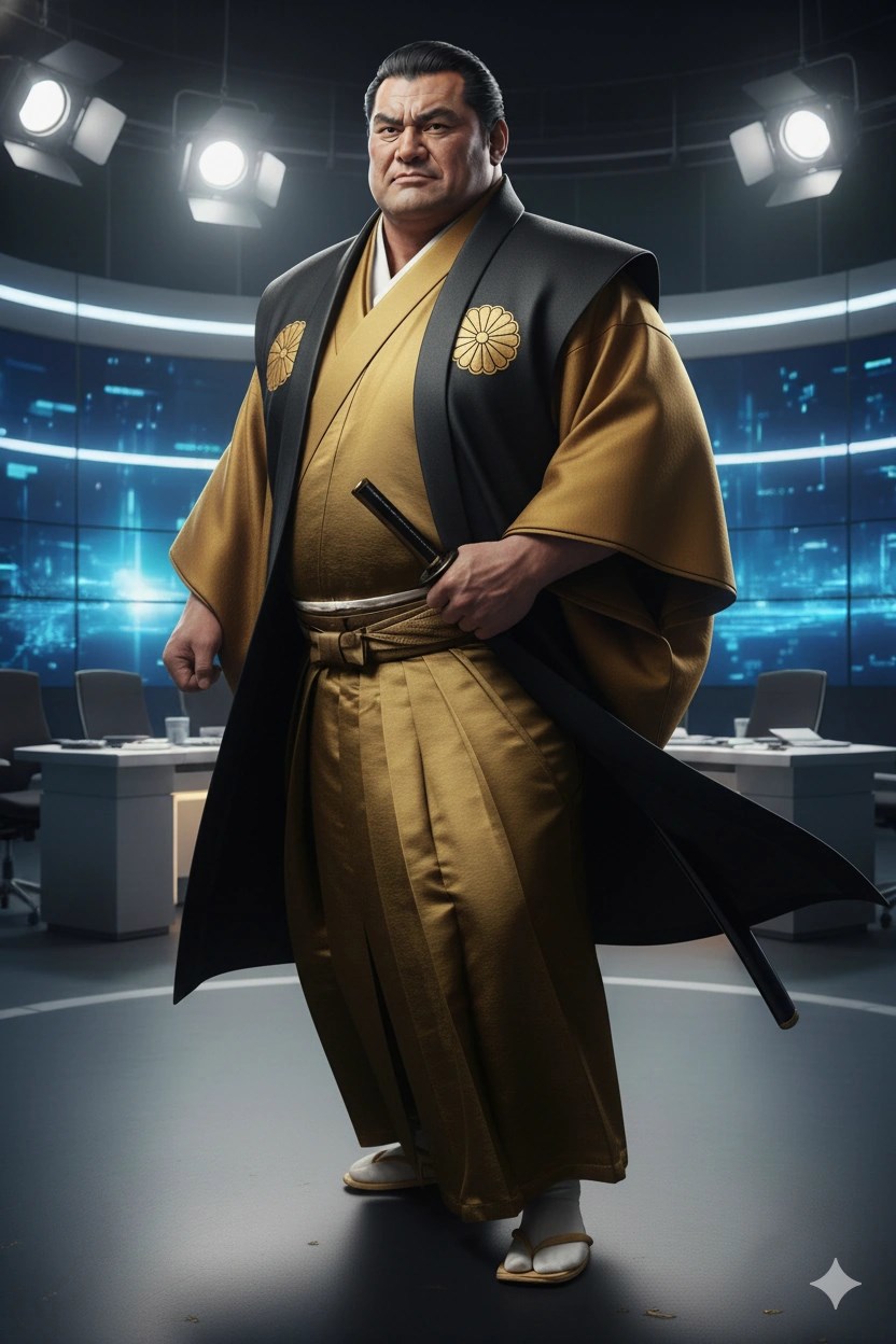 Один из главных антагонистов серии, Его Божественное Величество Император Японии Мусасимару, прямой потомок богини Аматэрасу-о-миками, в студии прямого эфира передачи «Главные новости» Японской Имперской телерадиокомпании.