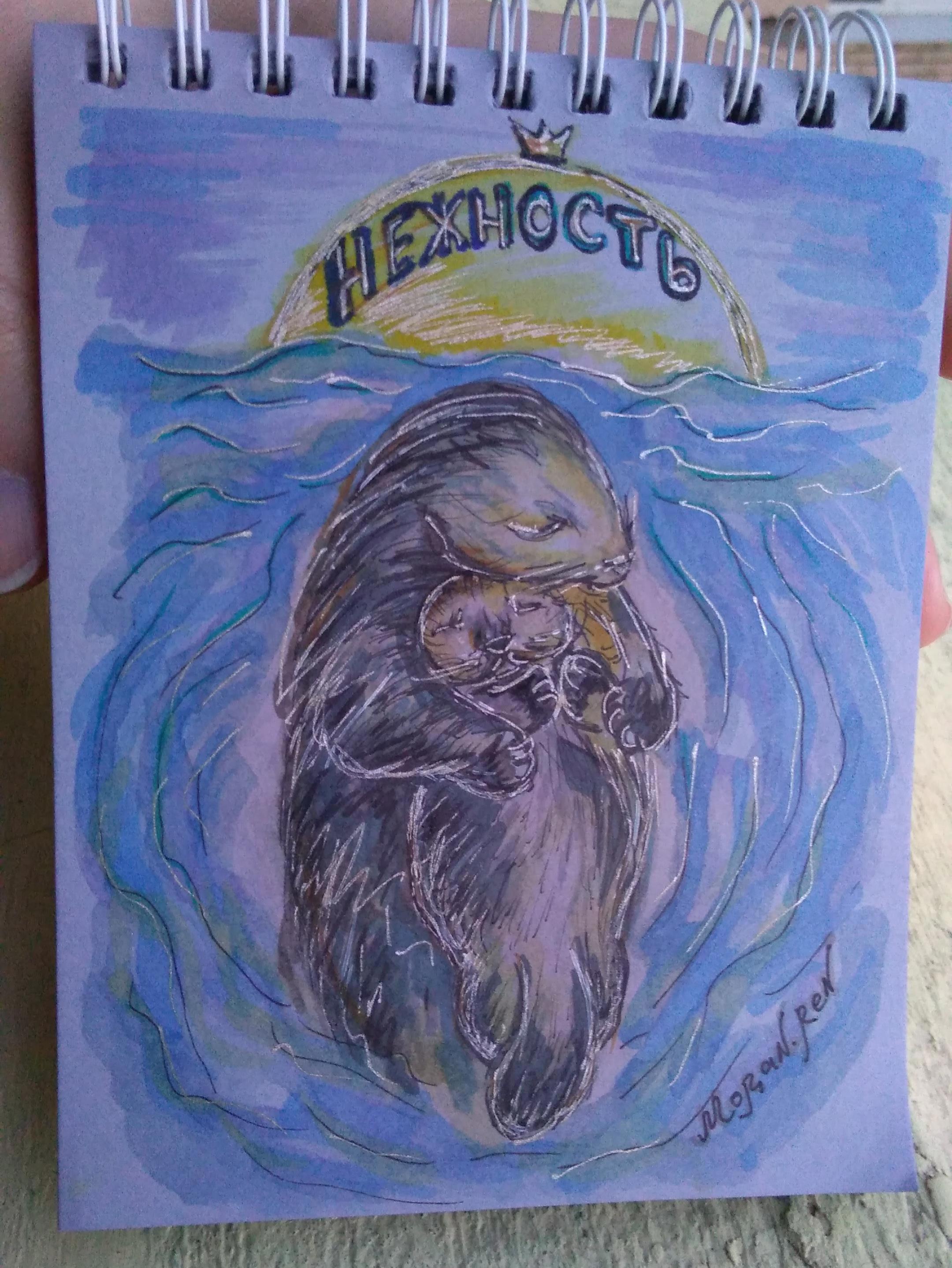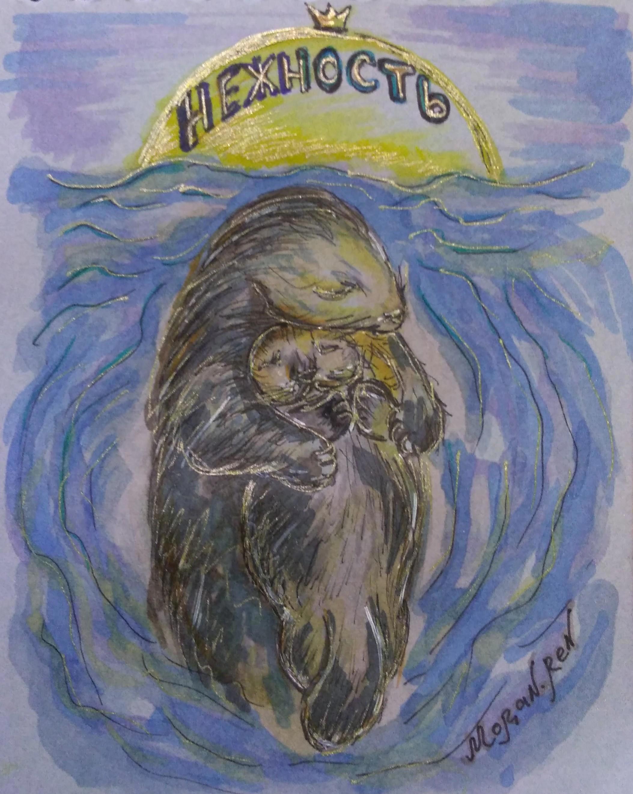 - малышей каланов мама баюкает на пузике и они почти всё время спят и терпеливо сносят всё, что она с ними делает;