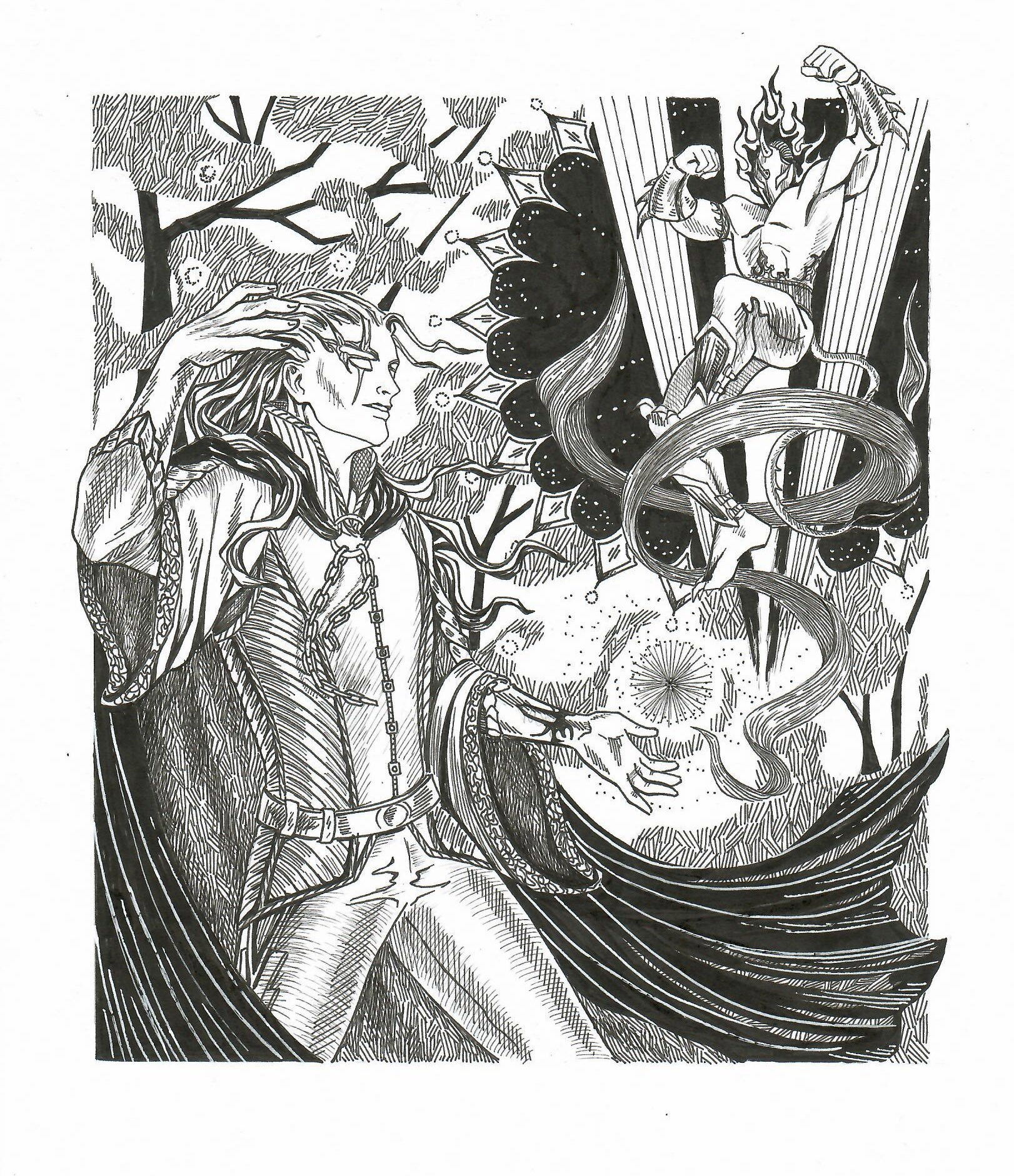 Чародей Автор: Анна Дербенёва книжная иллюстрация, линер, фэнтези, чернила, чернобелое, traditionalart, авторский арт, арт, графика 395 Пожаловаться