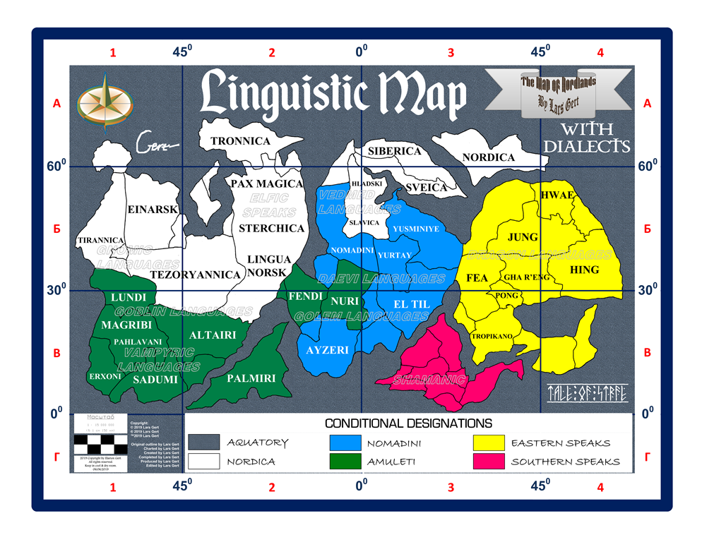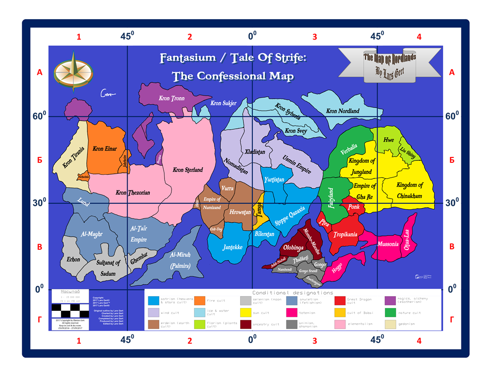 Сверху вниз: политическая карта (территории королевств, гербы / эмблемы, флаги), физическая карта (рельеф, гидрография), этническая карта (народы), агроэкономическая карта (сельскохозяйственная, балл бонитета, категории пригодности земель), конфессиональная карта (верования), лингвистическая карта (языки, говоры, наречия), карта форм правления (магократия, астрократия, некрократия, сомнократия), ландшафтная карта (леса, марши, болота), карта почв, обзорная карта, карта 1-ой эпохи.