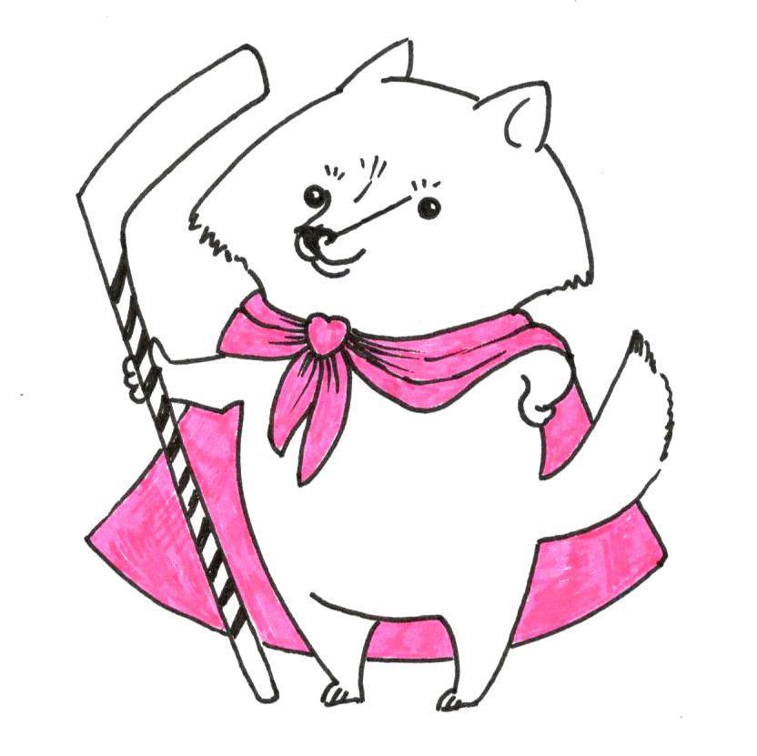 Белое и пушистое зло! В розовом плаще с хоккейной клюшкой:)
