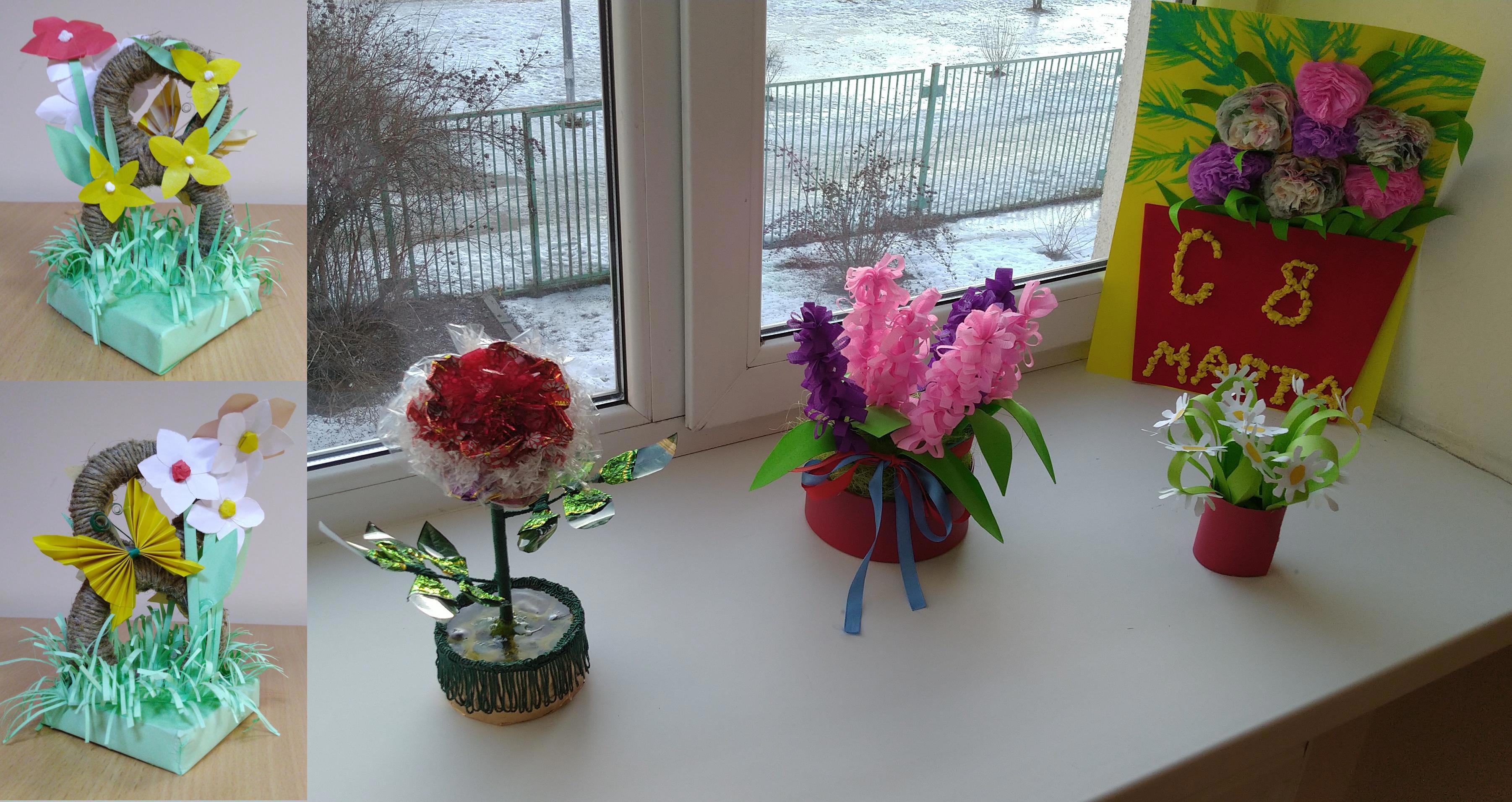 Поделка на 8 марта под тематическим названием "Цветы для мамы", совместное творчество с ребёнком.