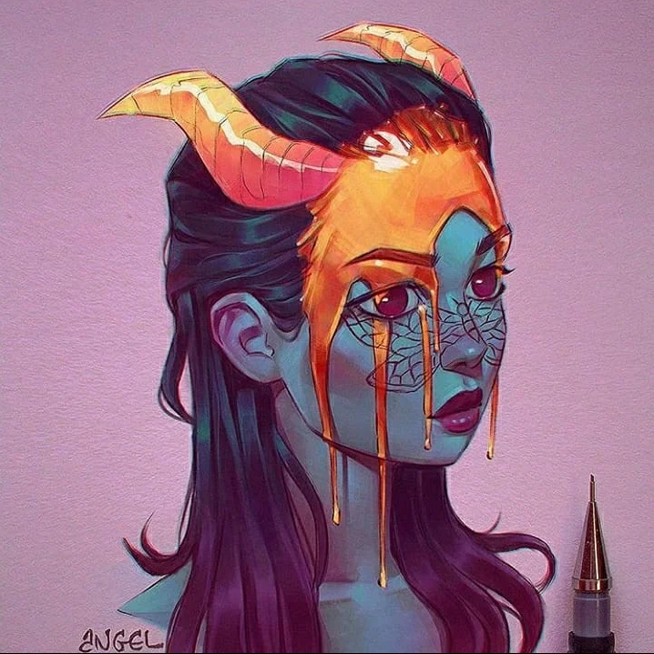 Портрет, с которым я поучаствовала в челлендже из инстраграмма, где надо было нарисовать в своем стиле вот этот рисунок: