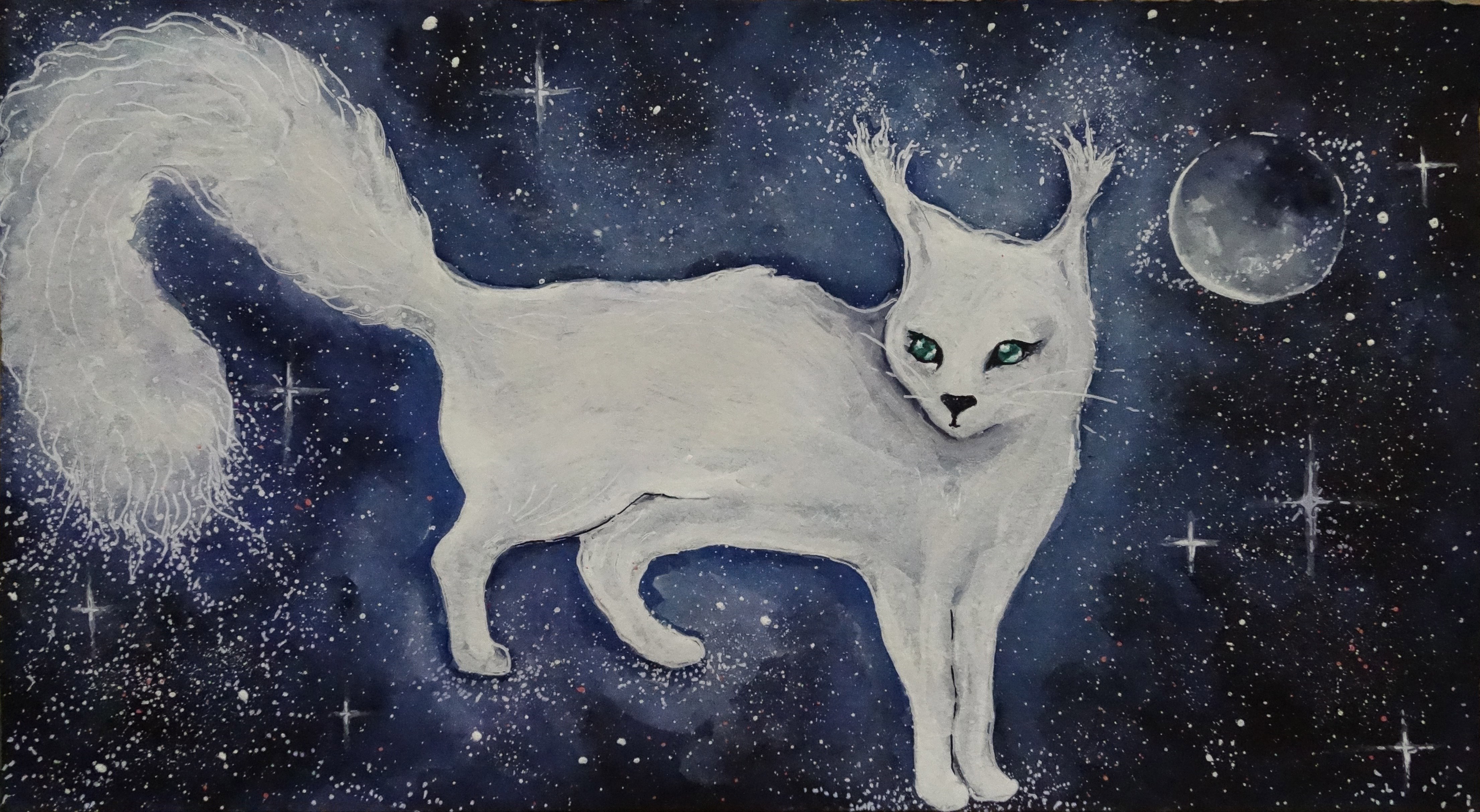 Звёздный белко-кот по имени Луви. Приходил раньше ко мне во снах и рассказывал всякие интересные штуки про мир сновидений. Пару раз спасал от беды. В общем, настоящий друг, поэтому я решил его зарисовать. Но вот беда... Как только нарисовал Луви, он перестал сниться. А с вами случалось что-нибудь подобное?