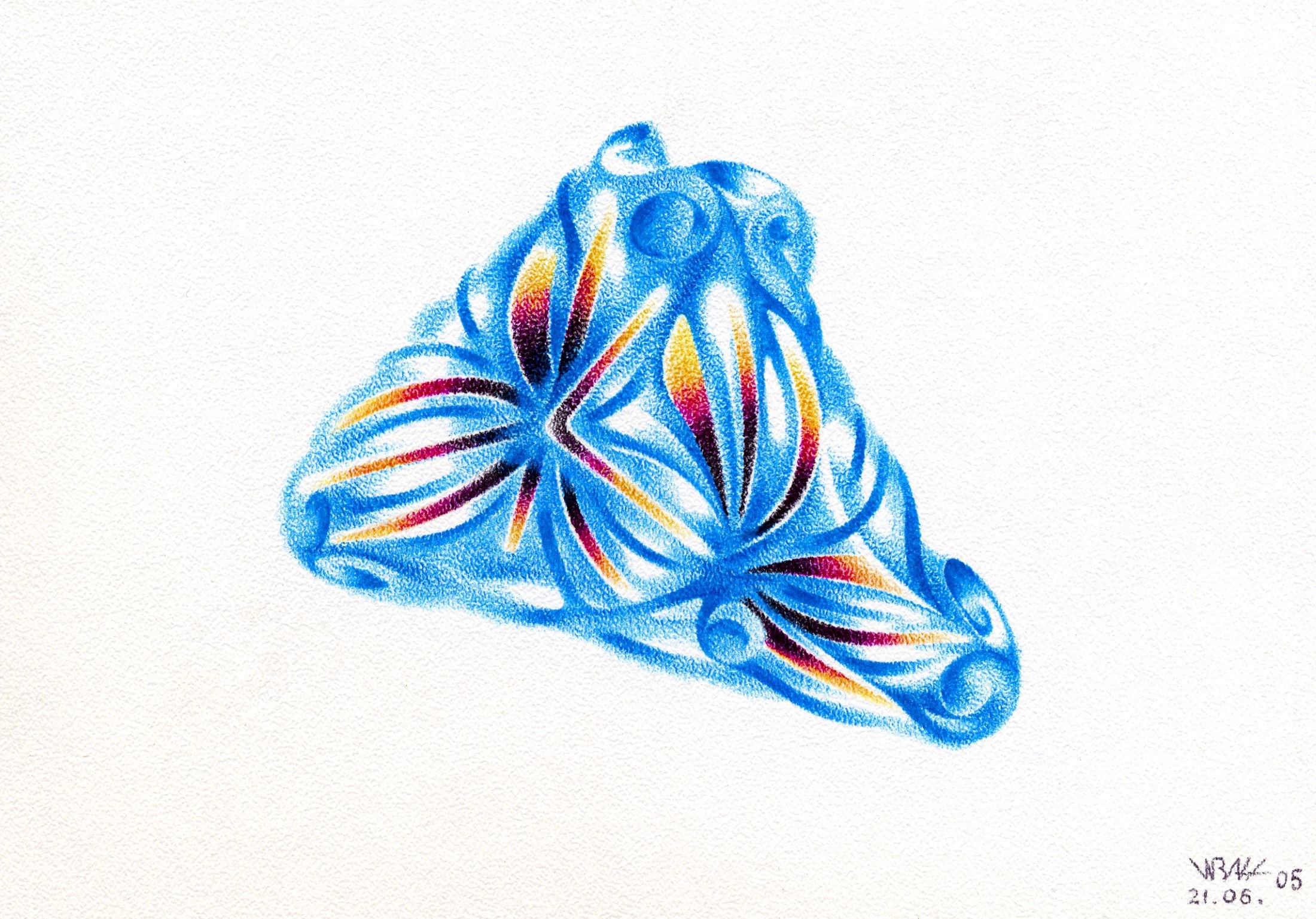 Бумага «яичная скорлупа», шариковые ручки. Размер 10х15 см. 2005 г.