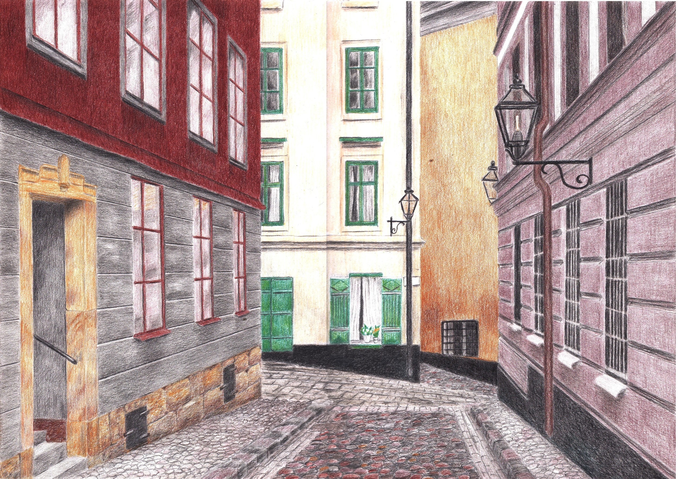 Мой первый и последний городской пейзаж Стопятьсот тонких, невидимых линий построения от которых я чуть с ума не сошла, отбили охоту к теме.