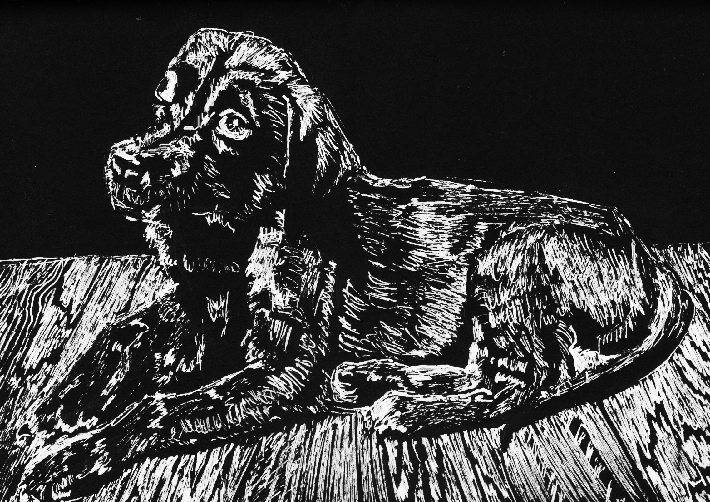 Собачка Автор: Риона Рей Первый опыт белым по чёрному.Это же ужас! Как это ваще делают?((( собака, графика 368 Пожаловаться