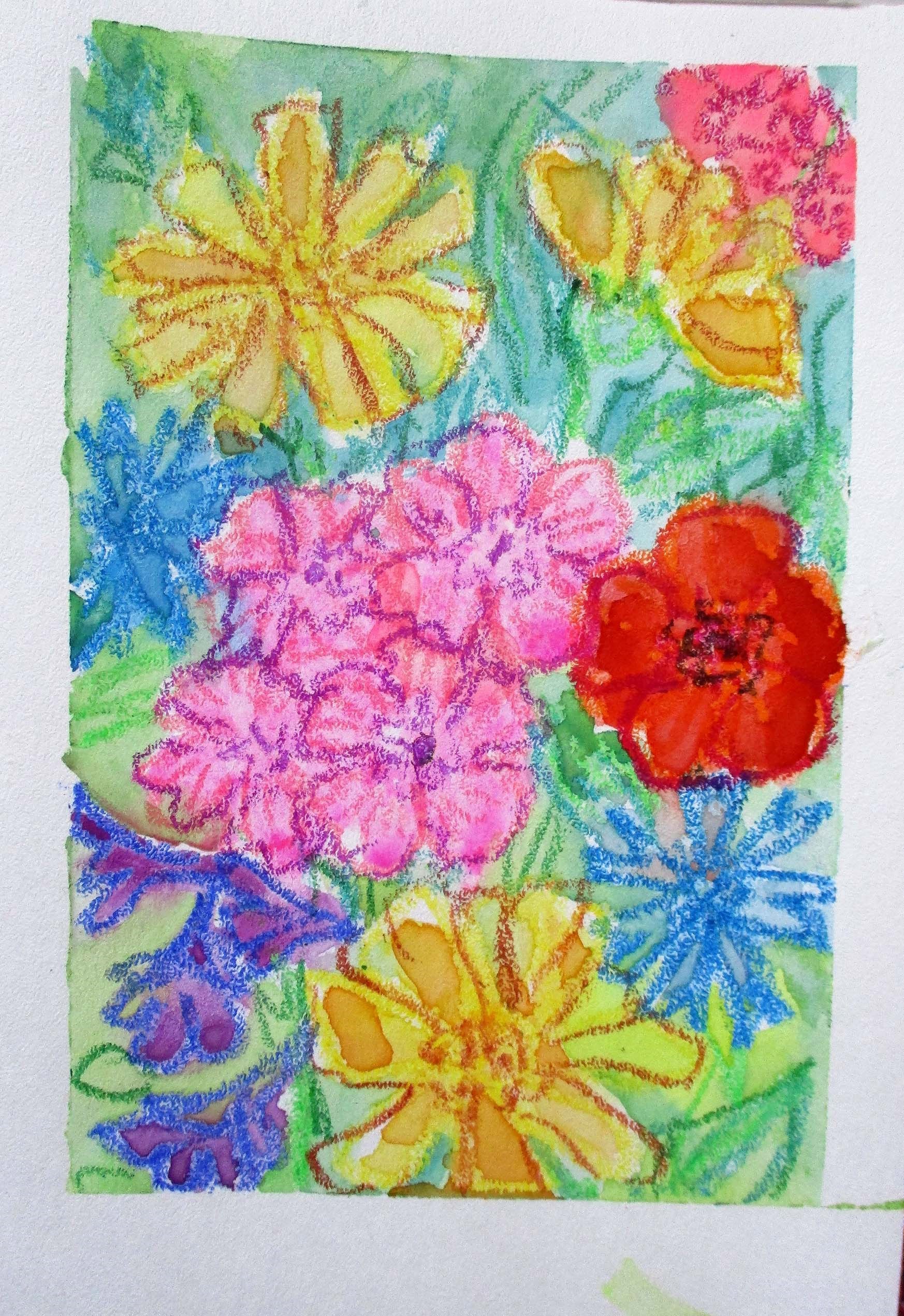 полевые цветы-2 Автор: Елена Матеуш Второй вариант полевых цветов. Здесь я вначале рисовала разноцветной масляной пастелью, а потом добавляла акварель. масляная пастель, цветы, акварель 311 Пожаловаться