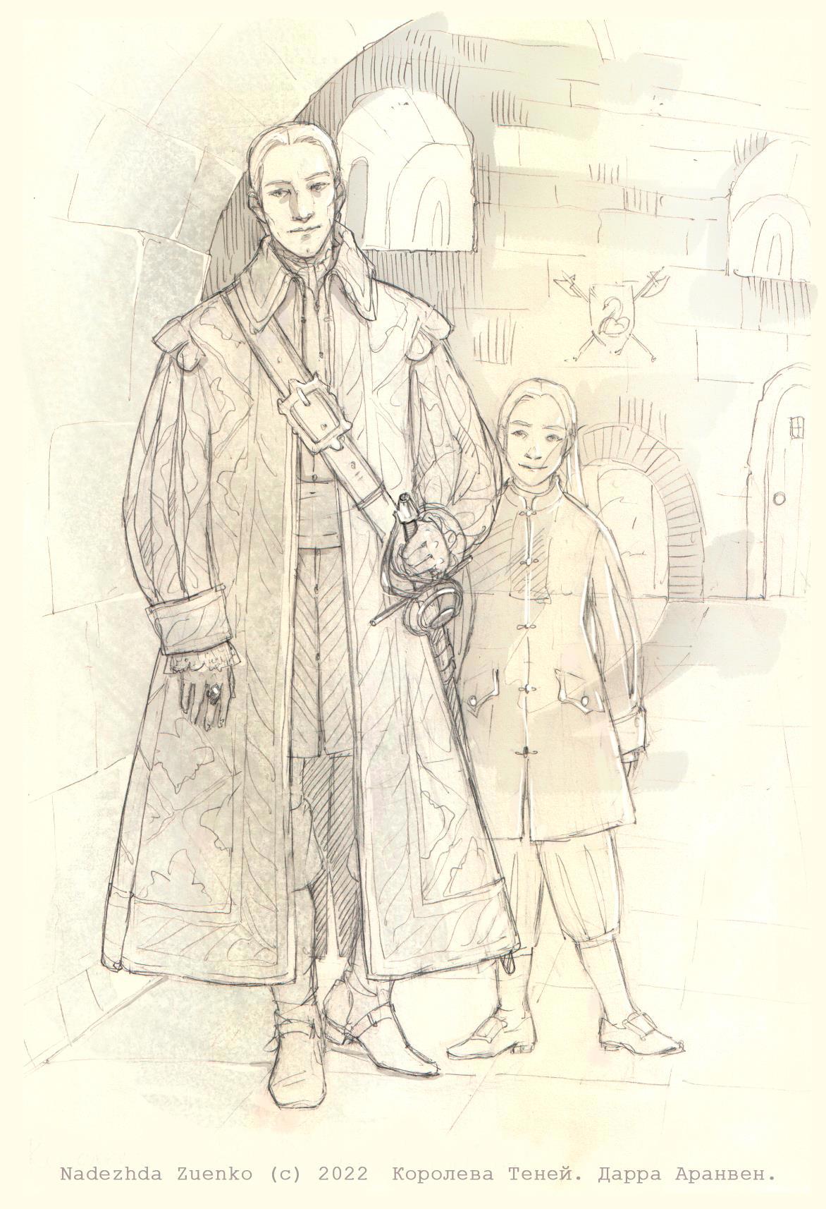 Вредный всё-таки товарищ Дарра ). Если Лу я мучила карандашом всего часика два, переосмысливая сюжет, то с Даррой вышло по-другому. Как это должно выглядеть в целом, я как придумала, так и не меняла. Но РАПИРА! Но описанный в тексте длинный камзол, помноженный на Ренессанс!.. Три дня, ребята, разбросанные на несколько месяцев. Начинала, отчаивалась, бросала. Потом снова пыталась и снова бросала. И вот сегодня таки доделала! %)