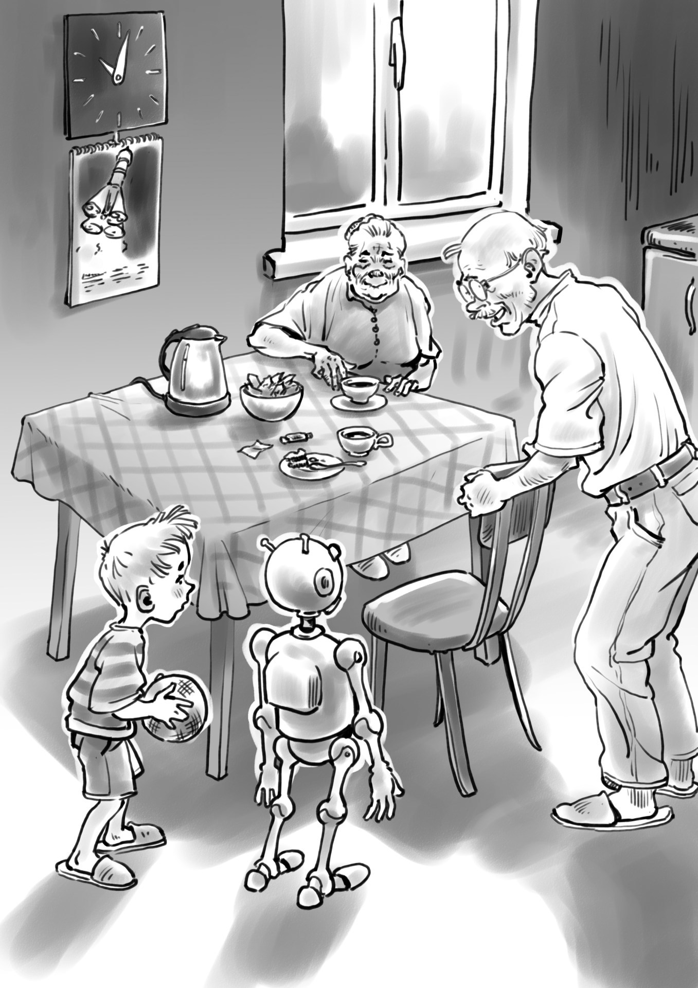 9-ая иллюстрация "Приветствие" Автор: Степан Мазур Художник: Александр ПрибыловДля моего детского романа Робот с космодрома "Восточный" Серия "Приключения Стёпки и его домового робота". книжная иллюстрация, мои персонажи, робот, сказка, творчество, детское, детям, иллюстрация, арт 412 Пожаловаться