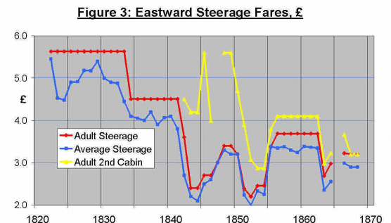 А вот цены для 3-го класса на кораблях Коуп Лайн, небольшой почтовой компании, у которой были только парусные суда.