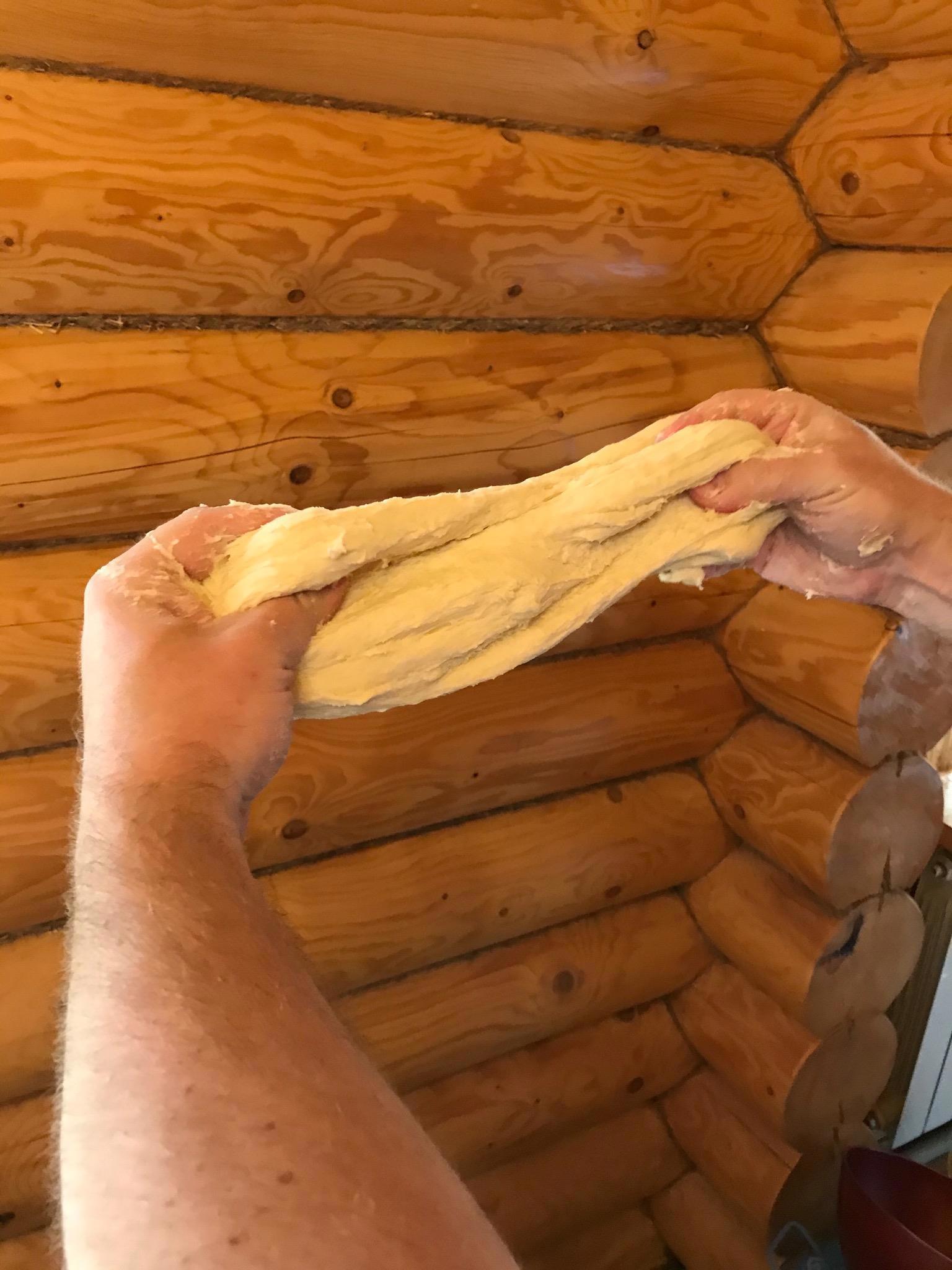 Замесить дрожжевое тесто - пока оно не перестанет приставать к рукам: