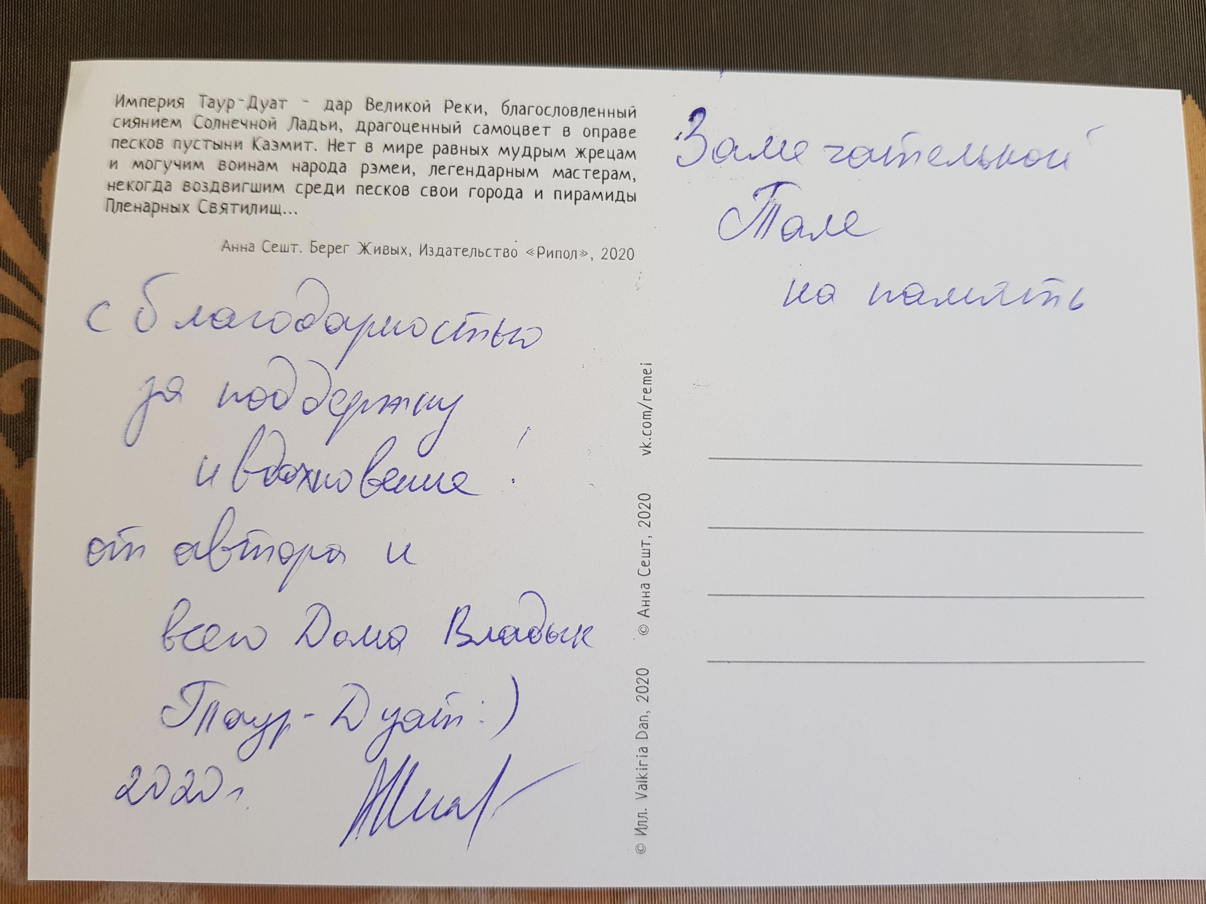 Автор: ТалаУ меня сегодня радость - получила подарочек от любимого писателя А-К. Никитиной, она же Анна Сешт