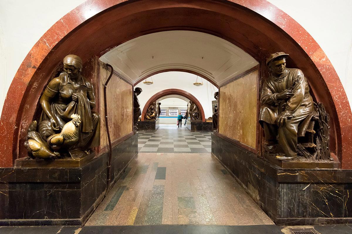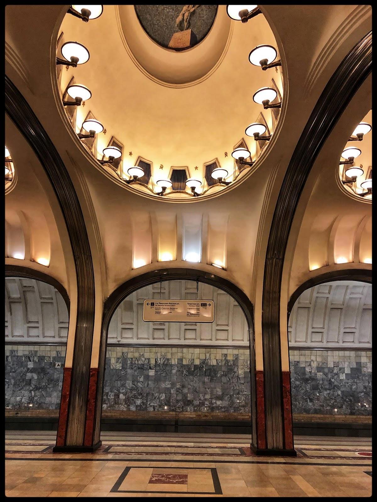 Пока идея такая - арка взята с какой-нибудь очень узнаваемой станции московского метро, внутри арки - вагон конки.