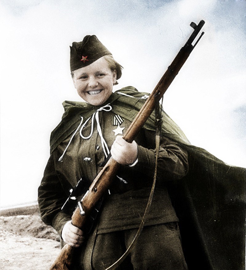 Вот это например - Машенька Кувшинова, кавалер Ордена Славы, уничтожившая несколько десятков немцев: