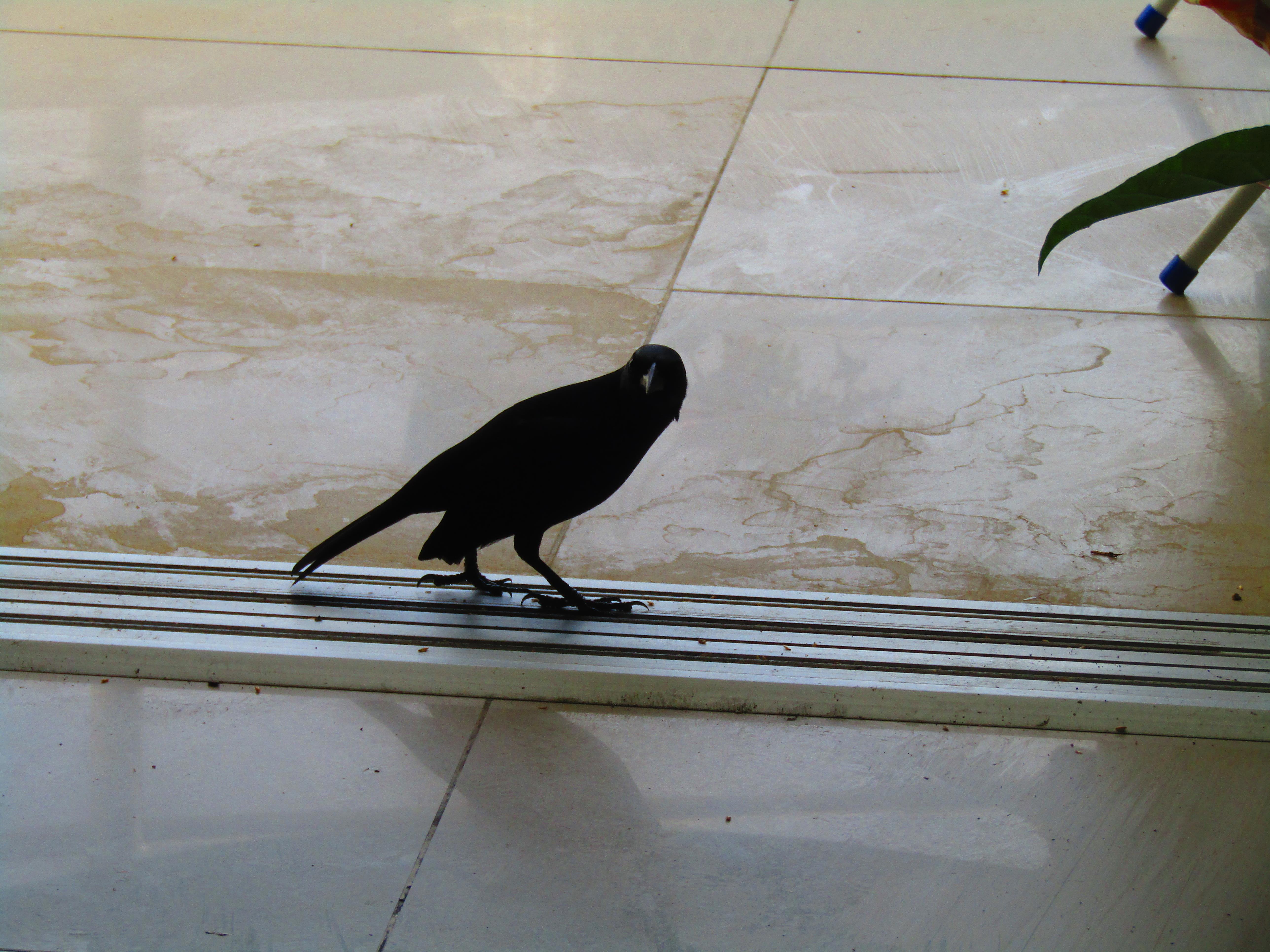 После того, как к нам на балкон прилетела пустельга (или кто-то сильно похожий на это соколообразное), а этот храбрый птиц вначале на нее бросился, защищая собрата, а потом в углу квартиры под фикусом отсиживался, иногда заходит, не понимает, как глупые двуногие в каменных пещерах живут, и уходит обратно. )) Вообще, птиц по балкону предпочитает ходить, видать, перекармливаю, летать тяжко. ))