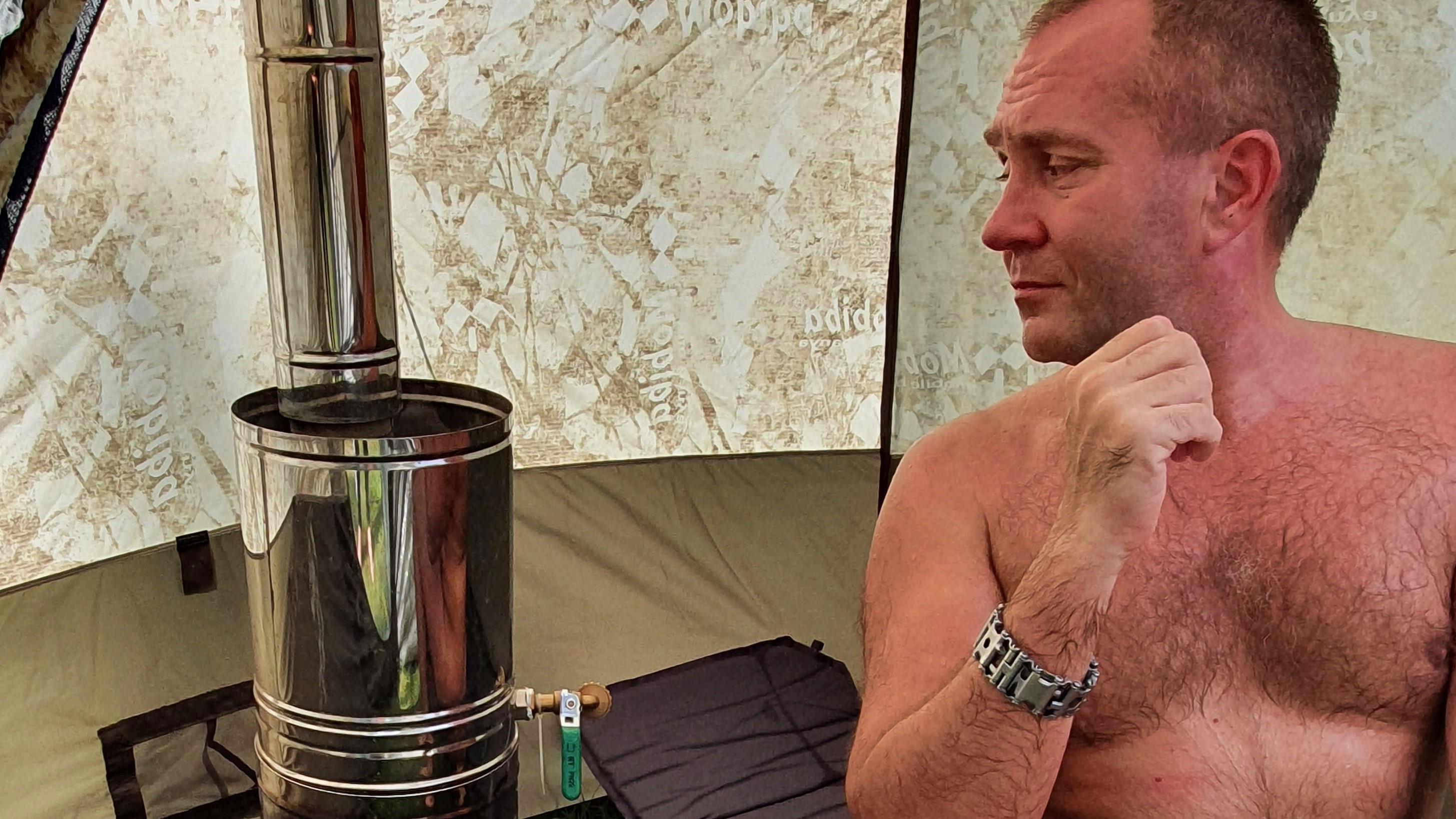 По воскресеньям я хожу в баню. Ну, по крайней мере ходил раньше. Купленная в прошлом году «Мобиба» — мобильная баня, оказалась просто великолепной. С её помощью я продлил себе купальный сезон до поздней осени — было забавно смотреть на мерзнущих рыбаков, уныло созерцающих как мы, распаренные и красные, выскакиваем из палатки и прыгаем в ледяную воду — кажущуюся, после ада внутри, почти теплой.