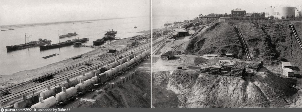 До революции в Царицыне на этом месте, прихватывая территории нынешних ЦПКО и парка "Баку", располагался нефтесиндикат братьев Нобелей. Очень удобное расположение: рядом Волга и могли вплотную подойти танкеры, и железная дорога тоже никому не мешала: