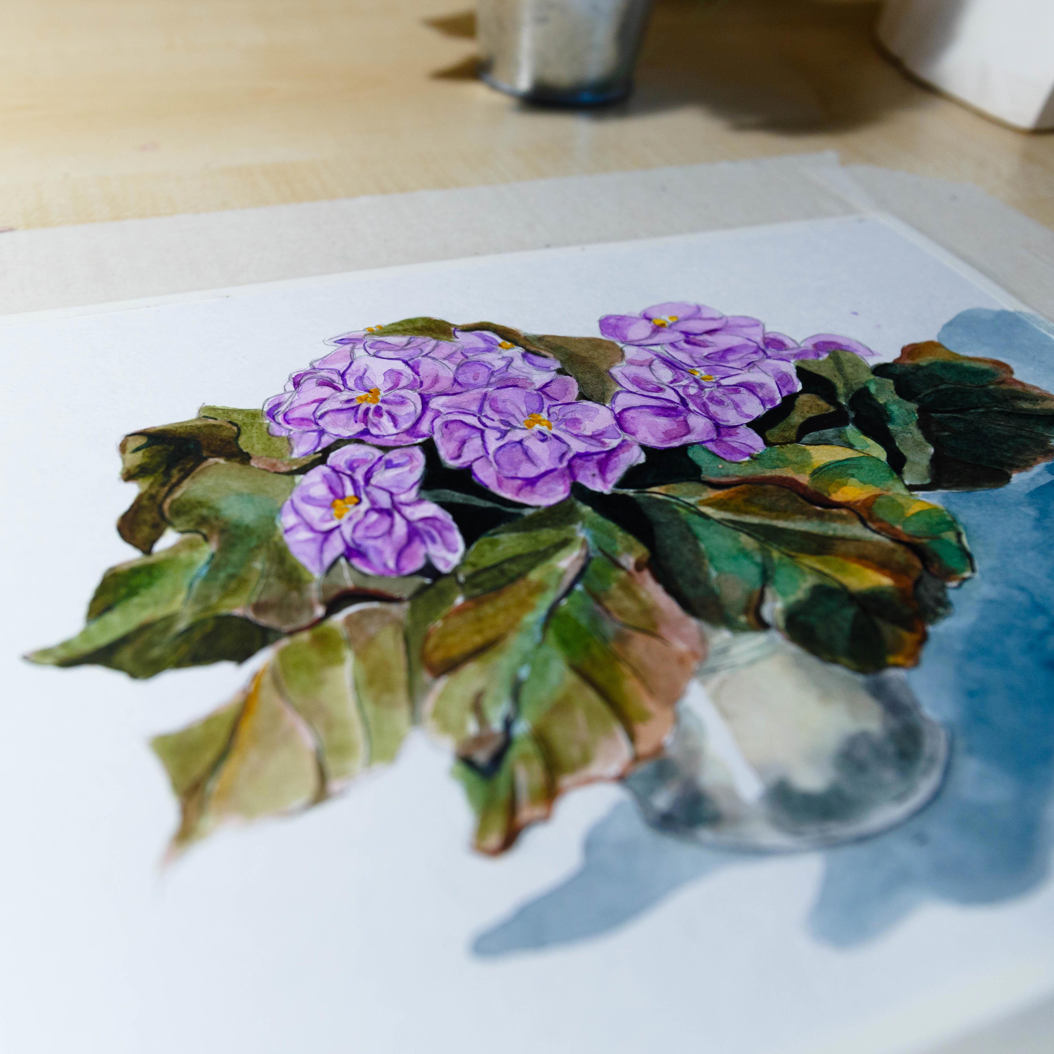 Акварельная живопись с натуры) Натура предоставлена мне моей мамой, искусственные цветы из лент)