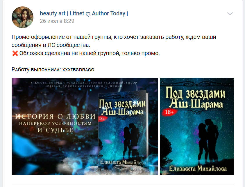 Так же,делаем оформление для сайтов (VK, Litnet, Author Today)