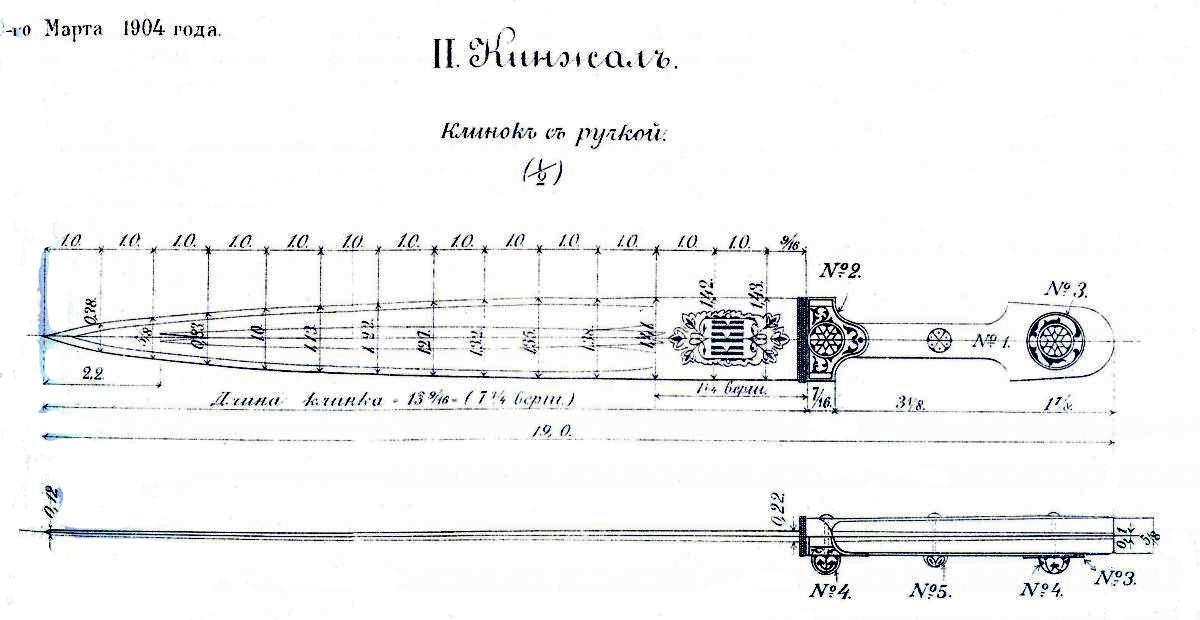 Хотя прямой кинжал тоже состоял на вооружении. Вот его чертёж: