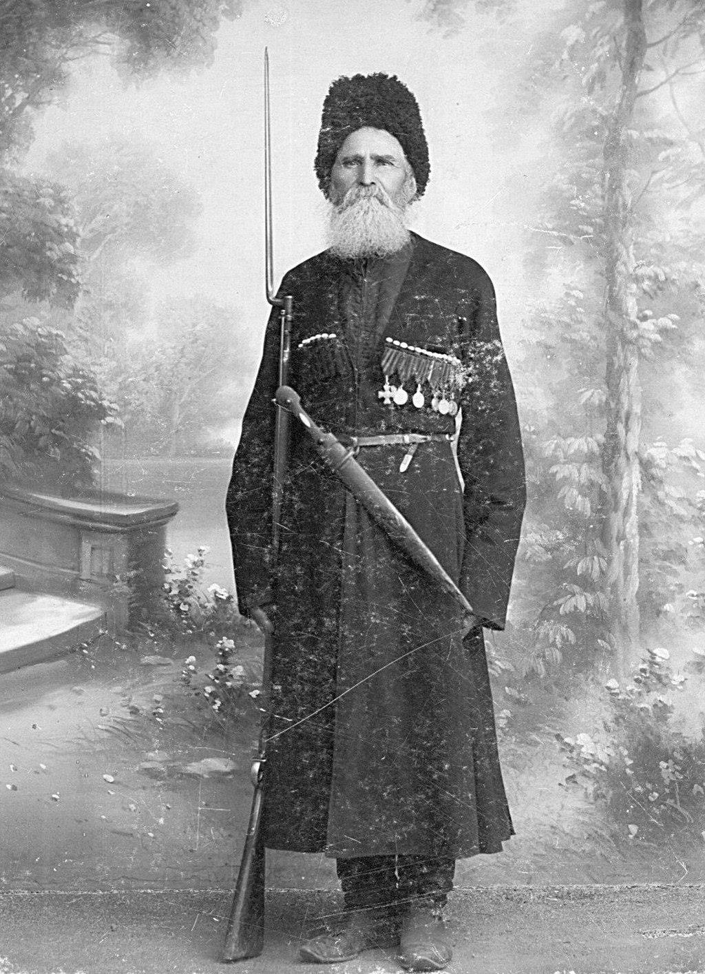 То есть большой кинжал. Такого типа кинжалы до сих пор очень любят на Кавказе, хотя это совсем не значит, что они родом именно оттуда. Можно заметить, что со временем размеры казачьих кинжалов становились несколько скромнее. Очень редко можно встретить на фото казаков с кривыми кинжалами типа бебут (бабут). Эти, вероятнее всего появились в результате централизованного снабжения армии. Дело в том, что у некоторых категорий военнослужащих в русской армии перед Первой Мировой был на вооружении «кривой кинжал». Вот такой (образца 1907 года):