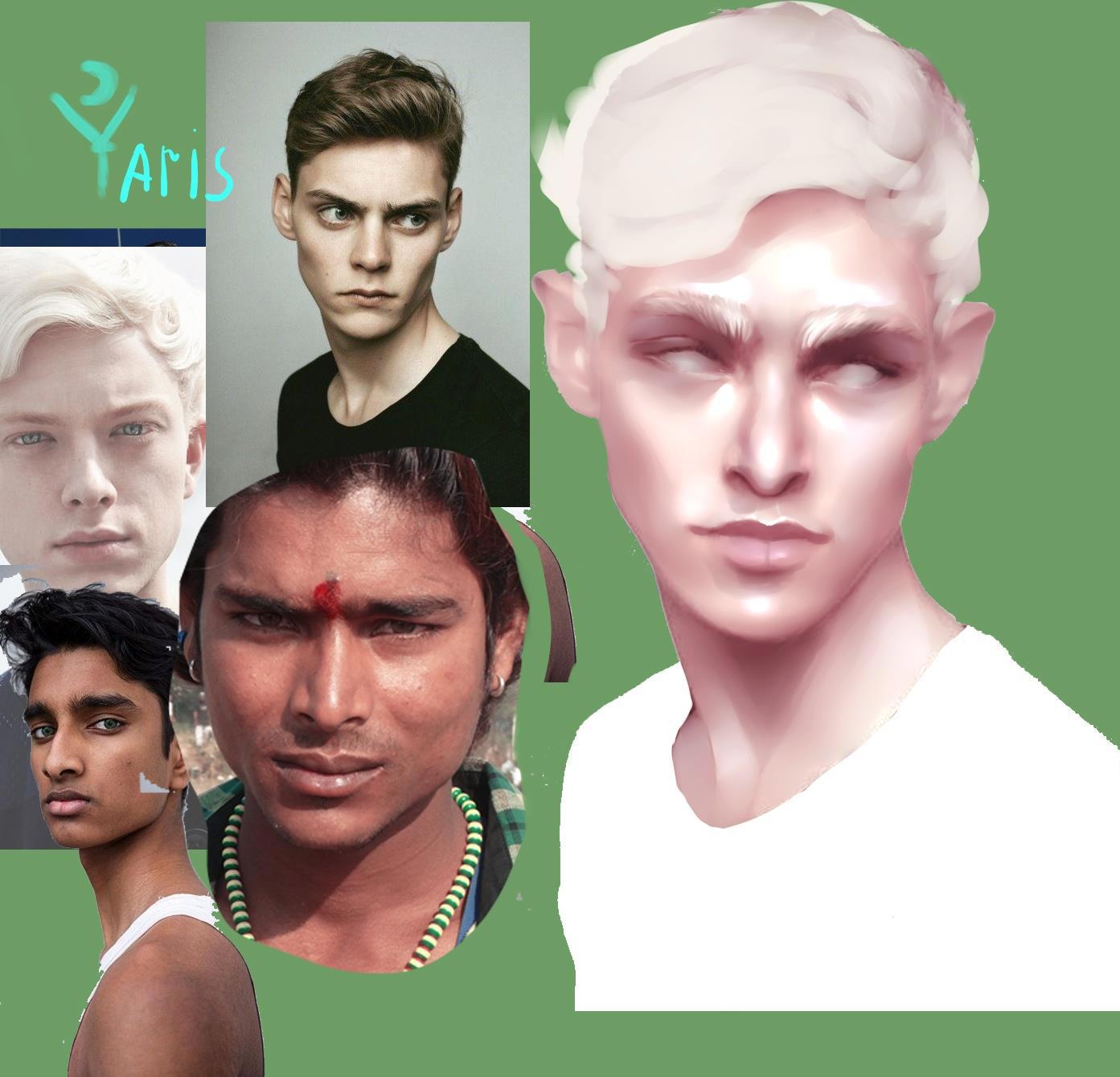 Сначала я нашла реф на позу, альбиносов и индусов. Набросала первоначальный портрет. Хранитель юноши - белая Лань. Постаралась это подчеркнуть чертами и ушками:)
