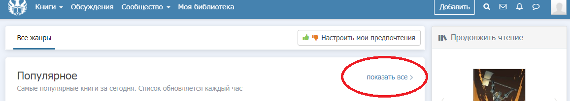 рядом со значком поиска есть вкладка показать все применимая к разделу популярное