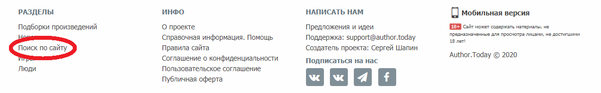 Впервые попадая на сайт сверху с права вы видите значок поиска при нажатии на который появляется просто строка поиска в которую вы вбиваете название книги или имя автора тэги и жанры данная строка не ищет, разве что автор укажет их не в тэгах а в описании