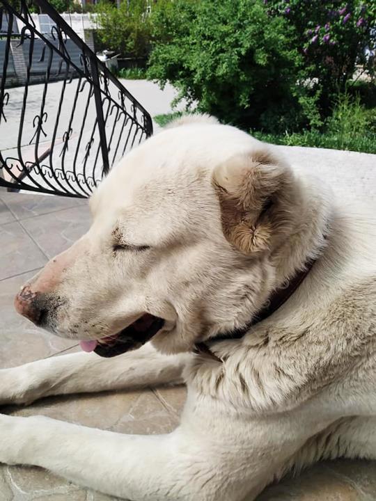 Август в этом году какой-то осенний. Ночи уже холодные, а днем хоть и солнечно, но ветер. Собака бродит по саду, пугает воробьев и голубей, развлекается как может.🙂