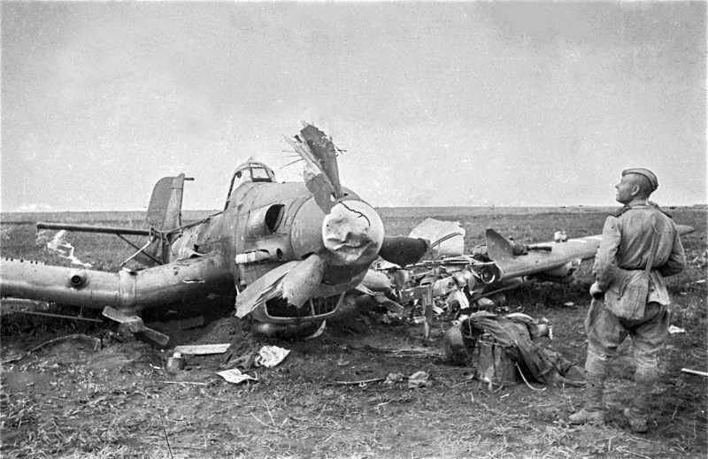 За штурвалом Юнкерса сидел совсем не новичок, а целый (на тот момент) командир 2-ой авиагруппы 1-ой эскадры пикирующих бомбардировщиков кавалер Рыцарского Креста гаупман Антон Кайль. Он уже повоевал во Франции, топил корабли в Ла-Манше, и вот теперь Россия. Они уже несли потери, но гаупмана Кайля пока миновали и снаряды и пули русских «ШКАСов». И уж меньше всего он ожидал такого... Он выходил из атаки, когда увидел, как снизу к его самолёту взлетел какой-то предмет «с хвостом». Дальше всё было быстро. Брезентовый ремень с гранатой намотался на винт и 170 гр взрывчатки сдетонировали, оторвав одну из трёх лопастей самолёта. Дикая вибрация довершила разгром за пару секунд. Ни гаупман Антон Кайль ни его штурман не успели воспользоваться своими парашютами, да это бы их и не спасло — высота слишком мала. Они хотели чужой земли — они её получили... полный рот. Вот так примерно: