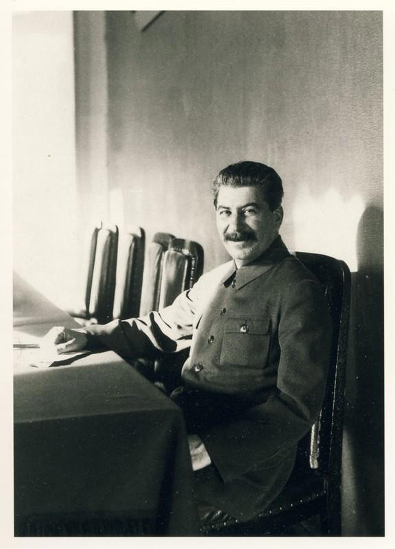 среди фотографий -- портрет Сталина; похороны его жены Надежды Аллилуевой, покончившей жизнь самоубийством; быт советских людей.